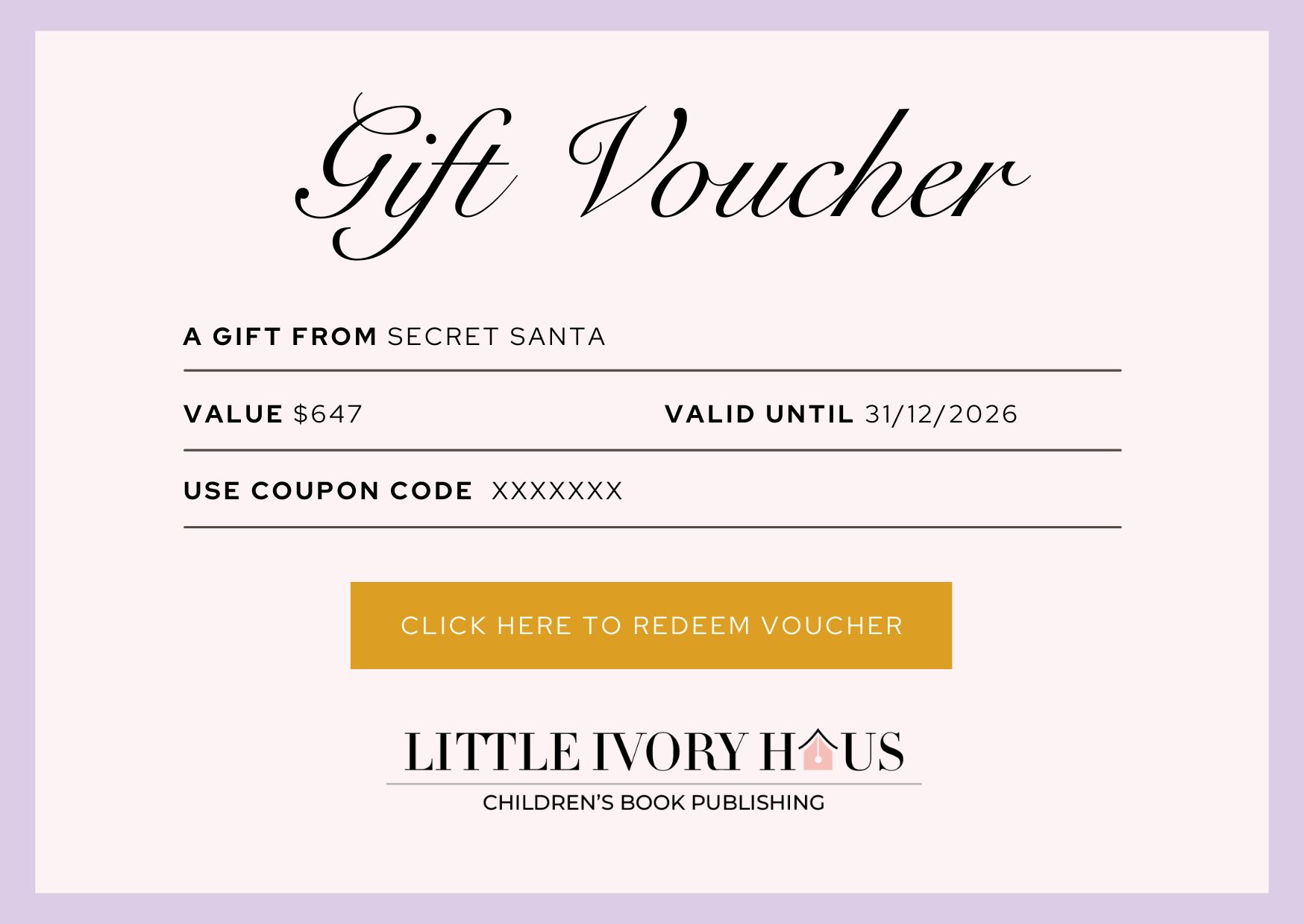 a Little Ivory Haus Author Gift Voucher.